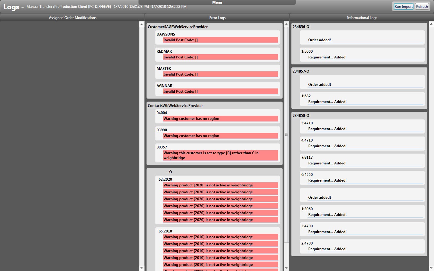 Not sure who would bother reading this but here’s a brief history of the app. It’s purpose is to import orders from our ERP software’s (SAGE) old school and very texty database design with very little input validation, over to our own in-house weighbridge system database.