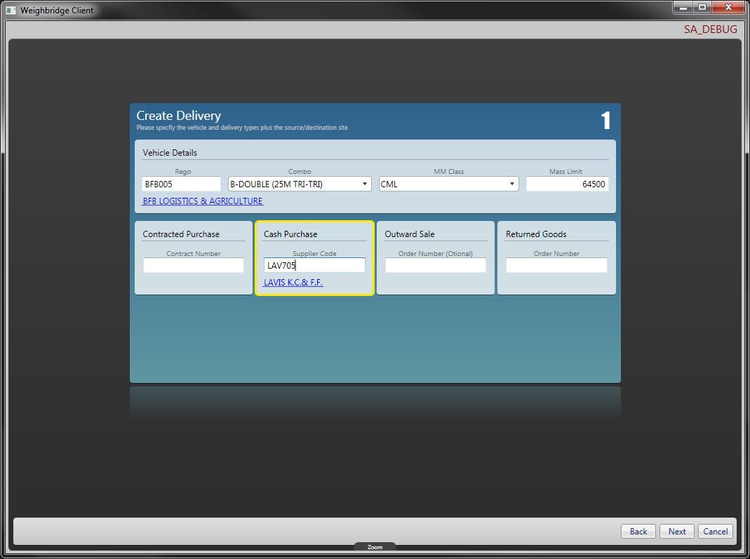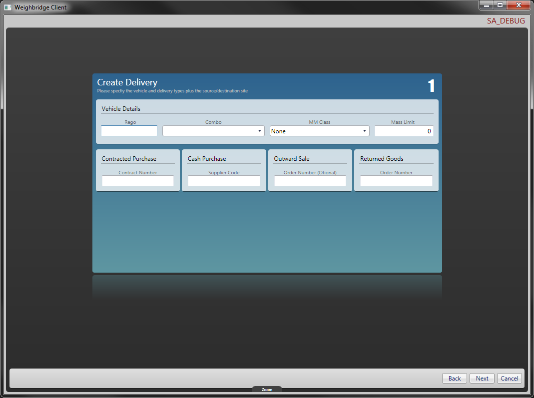 DelWiz1Had an awesome week of work last week, I finally started the actual Weighbridge client project that I’ve been working toward for the past six months. The guts of the client is the delivery wizard which guides the user through a series of steps to create one of the types of deliveries we receive in and out of the mill.