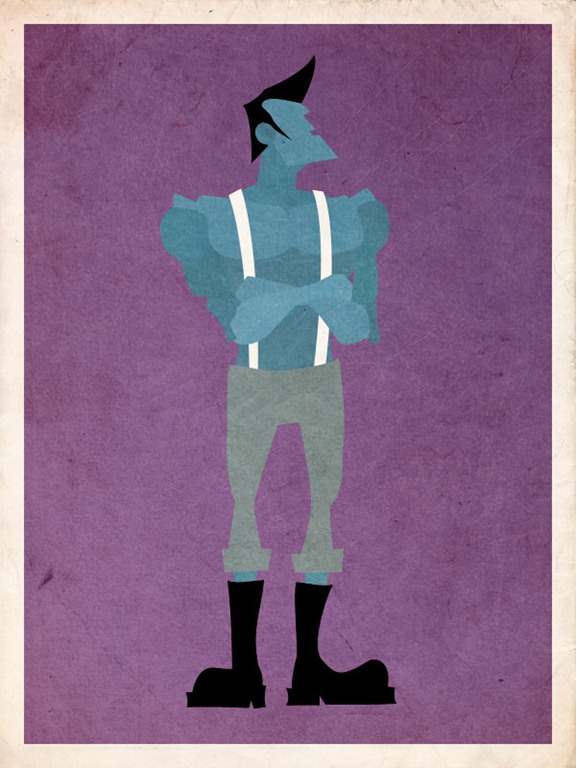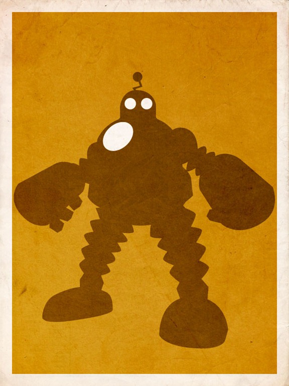 BrownBot gave me the opportunity to take the new style to the nth degree, stripping back all detail to just a silhouette. I’ve also fitted all the character redesigns with this textured poster frame, they’re starting to come together.